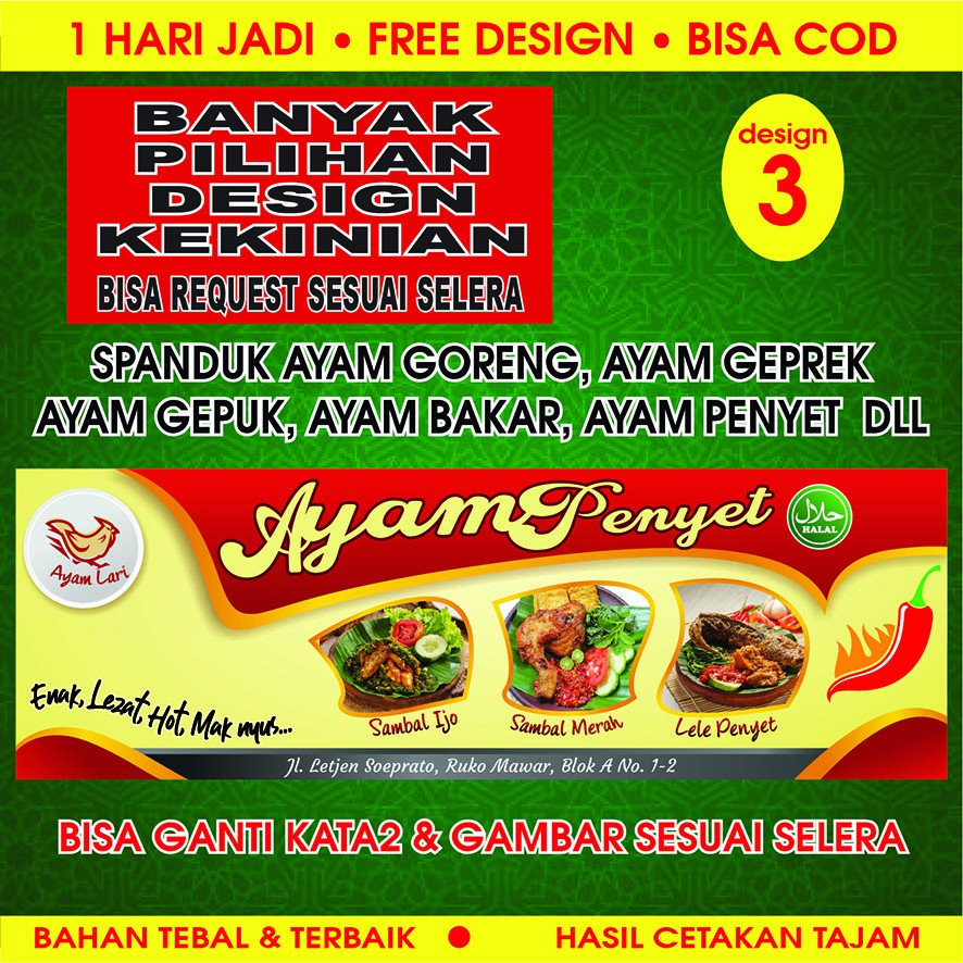 Jual spanduk banner ayam goreng / spanduk banner fried chicken indonesia|shopee . Ada gratis ongkir, promo cod, & cashback. Contoh spanduk ayam penyet, spanduk ayam bakar dan goreng, contoh desain spanduk unik, contoh desain banner makanan, contoh spanduk promosi . Nah sobat sesuai dengan judul di atas, kasima grafika selain melayani cetak spanduk, banner, baliho, atau stiker, kami . Bahan flexy premium 280 gram. Spanduk banner ayam geprek, ayam goreng, keren murah.